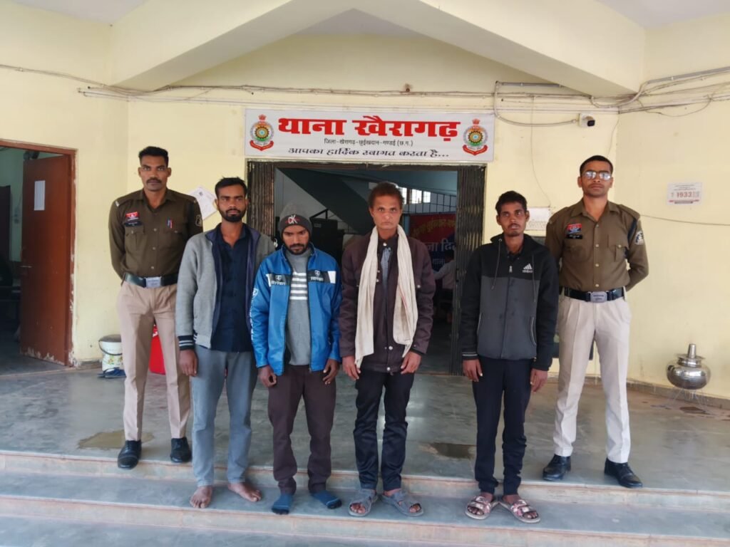 सूचना की तस्दीक हेतु धरमपुरा पुल, खैरागढ़ के पास नाकाबंदी की गई। दौरान नाकाबंदी उक्त दोनों वाहन बाजार अतरिया की ओर से आते दिखाई दिए। पुलिस द्वारा रोकने पर वाहन चालक एवं परिचालक वाहन छोड़कर भागने का प्रयास करने लगे, जिन्हें घेराबंदी कर पकड़ लिया गया।पूछताछ में आरोपियों ने अपने नाम इस प्रकार बताए –: