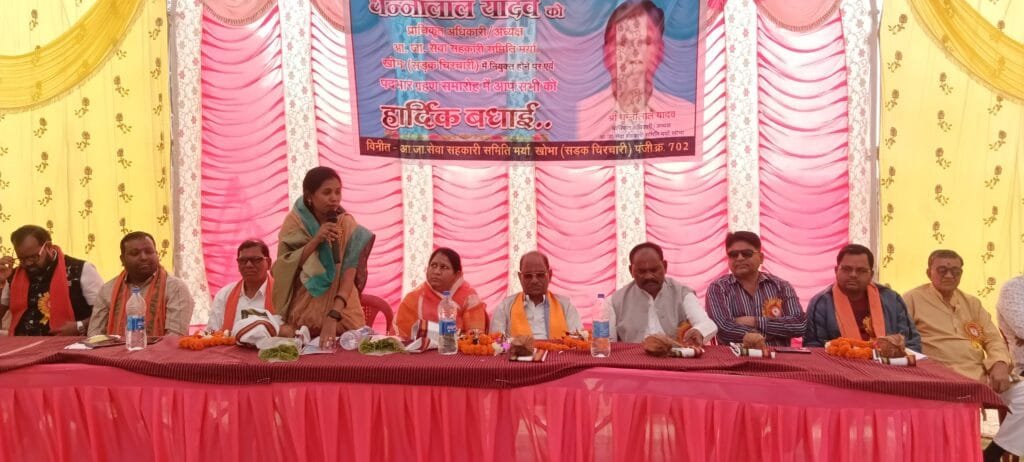 कार्यक्रम का शुभारंभ अतिथियों द्वारा विधिवत पूजा अर्चना कर किया गया तत्पश्चात अतिथियों का स्वागत सम्मान फूलमाला पहनाकर, बैच लगाकर स्वागत सम्मान किया गया।प्राधिकृत अध्यक्ष धन्ना लाल यादव ने पदभार ग्रहण किया। उक्त आयोजन पर राजनांदगांव जिला पंचायत अध्यक्ष श्रीमती गीता घासी साहू ने सम्बोधित करते हुए कहा कि छत्तीसगढ़ में मुख्यमंत्री विष्णु देव साय के नेतृत्व में किसानों को 3100 रुपए के भाव से 21किवंटल धान खरीदी किया जा रहा है.