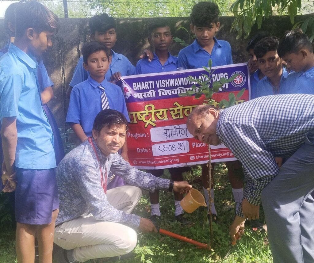 दुर्ग। भारती विश्वविद्यालय, दुर्ग के राष्ट्रीय सेवा योजना प्रकोष्ठ के तत्तवावधान में गोदग्राम कोनारी स्थित शासकीय माध्यमिक विद्यालय में स्वच्छता एवं वृक्षारोपण अभियान चलाया गया। सर्वप्रथम प्रकोष्ठ के कार्यक्रम अधिकारी एवं गोदग्राम समन्वयक डॉ. स्नेह कुमार मेश्राम द्वारा स्वच्छ भारत अभियान तथा वृक्षारोपण अभियान के उद्देश्य एवं महत्व पर प्रकाश डाला गया।