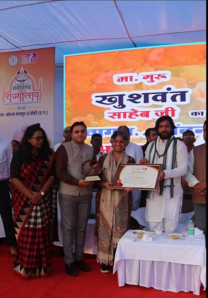 मोहला 5 नवम्बर 2025। जिला प्रशासन मोहला–मानपुर–अंबागढ़ चौकी की अभिनव पहल हमर स्वस्थ लइका कार्यक्रम को राज्योत्सव 2025 के अवसर पर पोषण एवं स्वास्थ्य क्षेत्र में उत्कृष्ट कार्य के लिए सम्मानित किया गया।