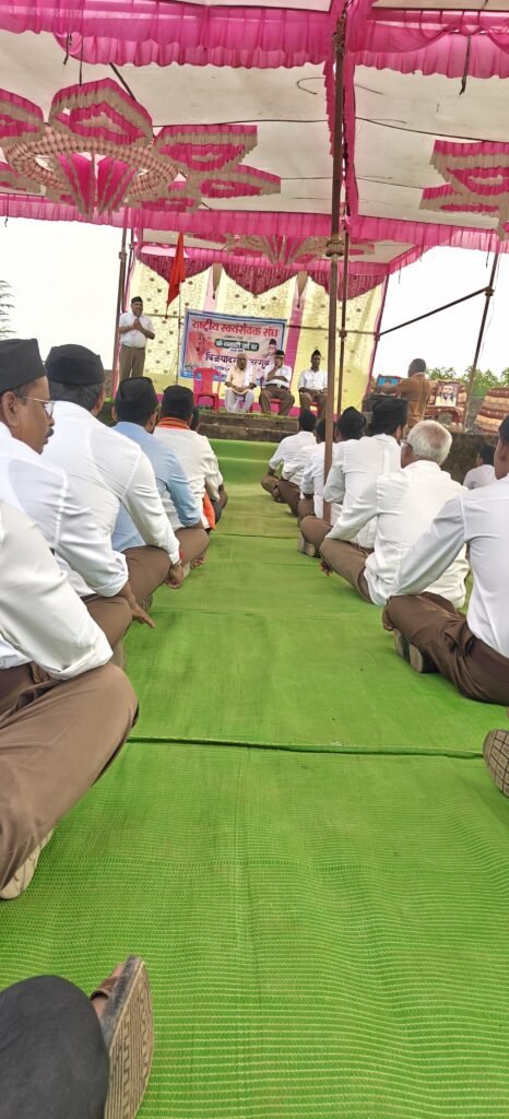 कार्यक्रम के मुख्य वक्ता श्री जितेंद्र जी शर्मा ने उपस्थित स्वयंसेवकों और ग्रामवासियों को संबोधित करते हुए कहा कि “विजयदशमी केवल बुराई पर अच्छाई की विजय का पर्व नहीं, बल्कि यह आत्म-सुधार और समाज कल्याण का संदेश देने वाला दिवस है।”