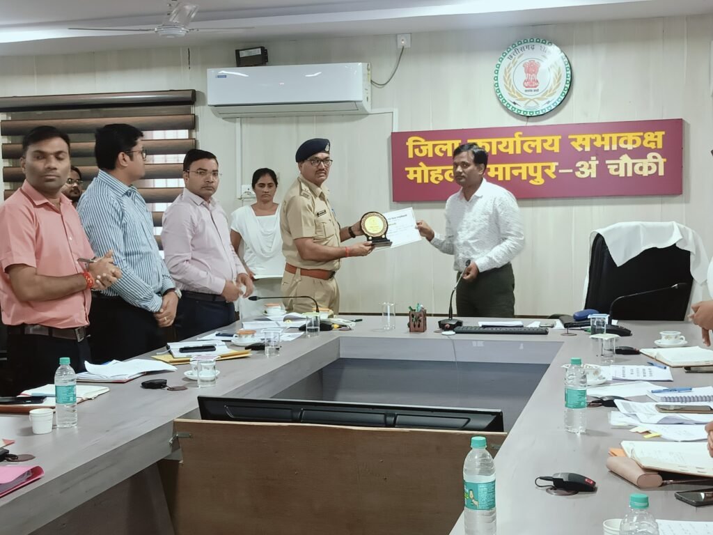 मोहला 23 जुलाई 2024। कलेक्टर श्री एस जयवर्धन ने जिला कार्यालय के सभाकक्षा में जिले में सुगम, व्यवस्थित यातायात के लिए यातायात प्रभारी श्री शेषनारायण देवांगन को प्रशस्ति पत्र भेंट कर सम्मानित किया। उल्लेखनीय है कि श्री देवांगन ने यातायात व्यवस्था सुदृढ़ करने में उल्लेखनीय कार्य किया है। जिसके चलते बाधारहित आवागमन की सुविधा सुनिश्चित हो सका है।