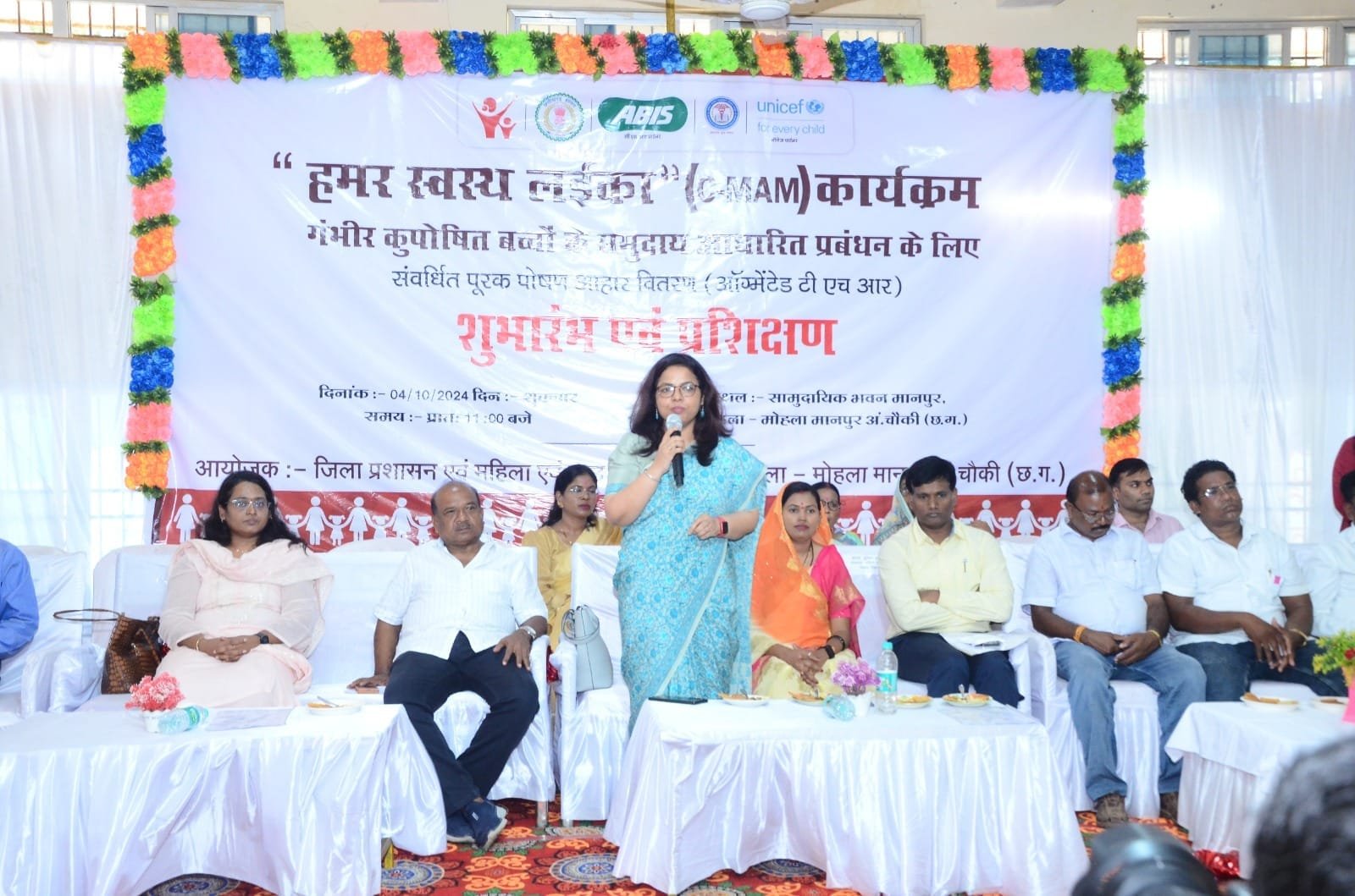 मोहला 4 अक्टूबर 2024। जिला मोहला-मानपुर-अंबागढ़ चौकी में अति गंभीर कुपोषित बच्चों एवं मध्यम गंभीर कुपोषित बच्चों को हमर स्वस्थ्य लईका कार्यक्रम अंतर्गत सामान्य श्रेणी में लाने की दिशा में यूनिसेफ, एबीस ग्रुप सी एस आर मद एवं जिला प्रशासन के सहयोग से संवर्धित टेक होम राशन वितरण का आज शुभारंभ किया गया। उल्लेखनीय है कि जिले में महिला बाल विकास विभाग अंतर्गत तीन परियोजना संचालित है। जिले में 890 आंगनबाड़ी केंद्र संचालित है। जिसमें 27707 हितग्राही दर्ज है। इनमें 169 अति गंभीर कुपोषित बच्चे दर्ज है। बच्चों को एबिस ग्रुप सी एस आर मद एवं यूनिसेफ के द्वारा संवर्धित टेक होम राशन प्रदाय किया जाएगा। जिले में इसका आज मानपुर के सामुदायिक भवन में आयोजित कार्यक्रम में विधिवत शुभारंभ किया गया।