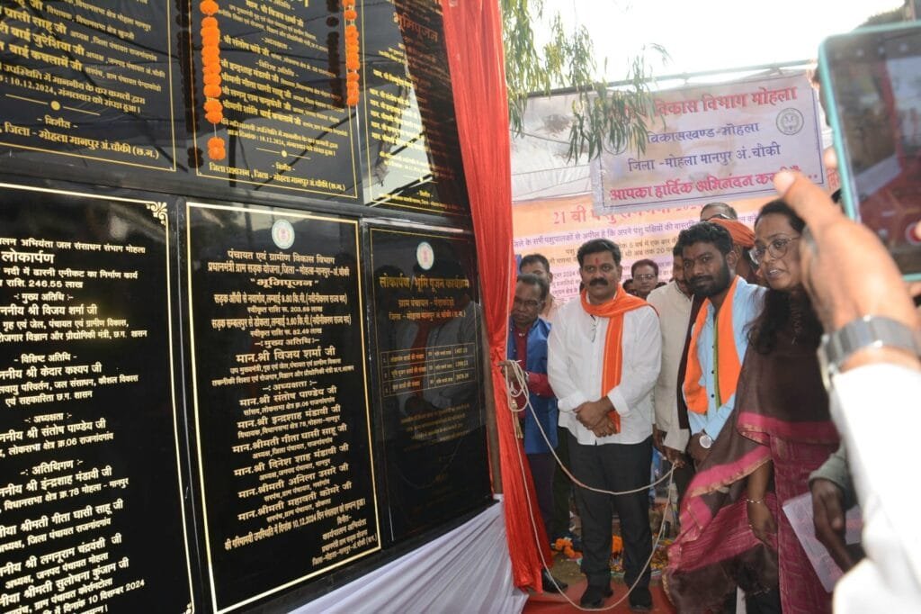 10 लख रुपए की लागत से ग्राम एरकोड में निर्मित सी सी रोड़ निर्माण कार्य काए 5.20 की लागत से ग्राम मरकेली में निर्मित सीसी रोड निर्माणकार्य का, 10 लख रुपए की लागत से ग्राम मरकेली में निर्मित सीसी रोड निर्माण कार्य काए 07 लाख रुपए की लागत से ग्राम मोहड़ में निर्मित मध्यान भोजन सेड निर्माण कार्य का, 07 लाख रूपये की लागत से ग्राम धानापयली पहले में निर्मित मध्यान भोजन शेड निर्माण कार्य का, 07 रूपये की लागत से ग्राम झीटिया में निर्मित मध्यान भोजन शेड निर्माण कार्य का, 07 लाख की लागत से ग्राम मुंजाल में निर्मित पुलिया निर्माण कार्य का लोकार्पण किया। इसी प्रकार उन्होंने यहां 06 लाख रूपये की लागत से ग्राम कातुलवाही में निर्मित पुलिया निर्माण कार्य का, 5 लाख रुपए की लागत से निर्मित ग्राम मांझीटोला में निर्मित यात्री प्रतीक्षालय निर्माण कार्य का, 5 लख रुपए की लागत से ग्राम खडख़ड़़ी में निर्मित यात्री प्रतीक्षालय निर्माण कार्य का, 6.50 की लागत से ग्राम बहरोनभेड़ी में निर्मित सामुदायिक भवन निर्माण कार्य का, 09 लाख रूपये की लागत से ग्राम पंचायत जोरातराई में निर्मित सीसी रोड निर्माण कार्य का,05 लाख रूपये की लागत से ग्राम सांगली में निर्मित कांक्रीट रोड़ निर्माण कार्य का, 05 लाख रूपये की लागत से ग्राम ब्राह्मण लझीया में निर्मित सी सी रोड़ निर्माण कार्य का, 05 लाख रूपये की लागत से ग्राम केसला में निर्मित सीसी रोड निर्माण कार्य का, 500000 की लागत से ग्राम केसला में निर्मित सीसी रोड निर्माण कार्य का, 05 लाख रूपये की लागत से ग्राम ब्राह्मणलजिया में निर्मित सीसी रोड निर्माण कार्य का, 05 लाख रूपये की लागत से ग्राम पंचायत छछानपाहरी में निर्मित सीसी रोड़ निर्माण कार्य का, 2.60 लाख रुपए की लागत से ग्राम कहाड़ कसा में निर्मित कांक्रीट रोड़ निर्माण कार्य काए लोकार्पण किया। इसी प्रकार उन्होंने 41.67 लाख रूपये की लागत से ग्राम मसनरी में चेक डैम निर्माण कार्य का, 34 लाख 52 हजार रुपए की लागत से ग्राम मसनरी में निर्मित चेक डैम निर्माण कार्य क्रमांक 5 हथरा का, 36.32 लाख रूपये की लागत से ग्राम मसनरी में निर्मित चेक डैम निर्माण क्रमांक 2 हथरा का, 2 करोड़ 46 लाख 55 हजार रूपये की लागत से निर्मित ढरनी ऐनीकट निर्माण कार्य का, 2 करोड़ 72 लाख 81 हजार रूपये की लागत से मानपुर में निर्मित कन्याछात्रावास भवन निर्माण कार्य का एवं 02 करोड़ 72 लाख 81 हजार रूपिए की लागत से निर्मित बालक छात्रावास निर्माण कार्य मानपुर का लोकार्पण किया।उप मुख्यमंत्री श्री शर्मा के कर कमलों से जिन विकास कार्यों का भूमि पूजन किया गया है, इनमें 2 करोड़ 03 लाख 69 हजार रुपए की लागत से बनने जा रहे औंधी से नवागांव सड़क निर्माण कार्य का भूमि पूजन किया गया। इसी प्रकार 82 करोड़ 48 हजार रूपये की लागत से बनने ज