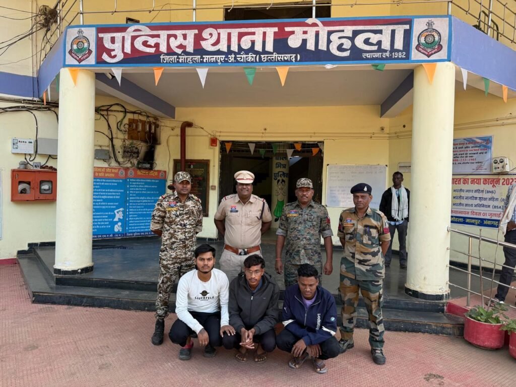 श्रीमान पुलिस अधीक्षक महोदय जिला मोहला-मानपुर-अं. चौकी श्री वॉय. पी. सिंह (भापुसे), अतिरिक्त पुलिस अधीक्षक महोदय, श्री पिताम्बर पटेल, श्रीमान पुलिस अनुविभागीय अधिकारी महोदय श्री नोहर लाल मंडावी एवं थाना प्रभारी निरीक्षक कपिल देव चन्द्रा के कुशल नेतृत्व में मामले की गंभीरता को देखते हुये तत्काल थाना स्तर पर टीम गठित कर तीनों आरोपी 1. युवराज देवहारे पिता रमेश देवहारे जाति हल्बा उम्र 23 साल निवासी ग्राम साल्हे थाना डोंगरगांव जिला राजनांदगांव 2. अभिषेक नाथ योगी पिता देवपाल नाथ योगी जाति योगी उम्र 23 साल निवासी ग्राम गेंदाटोला थाना मोहला जिला राजनांदगांव 3. मोनेश अहिरवार पिता दयालू राम अहिरवार उम्र 22 साल निवासी ग्राम मुढ़िया मोहारा चौकी मोहारा जिला राजनांदगांव से पूछताछ किया गया जिन्होने जुर्म स्वीकार करने पर दिनांक 11.11.2025 को ज्यूडिशियल रिमाण्ड पर भेजा गया है।