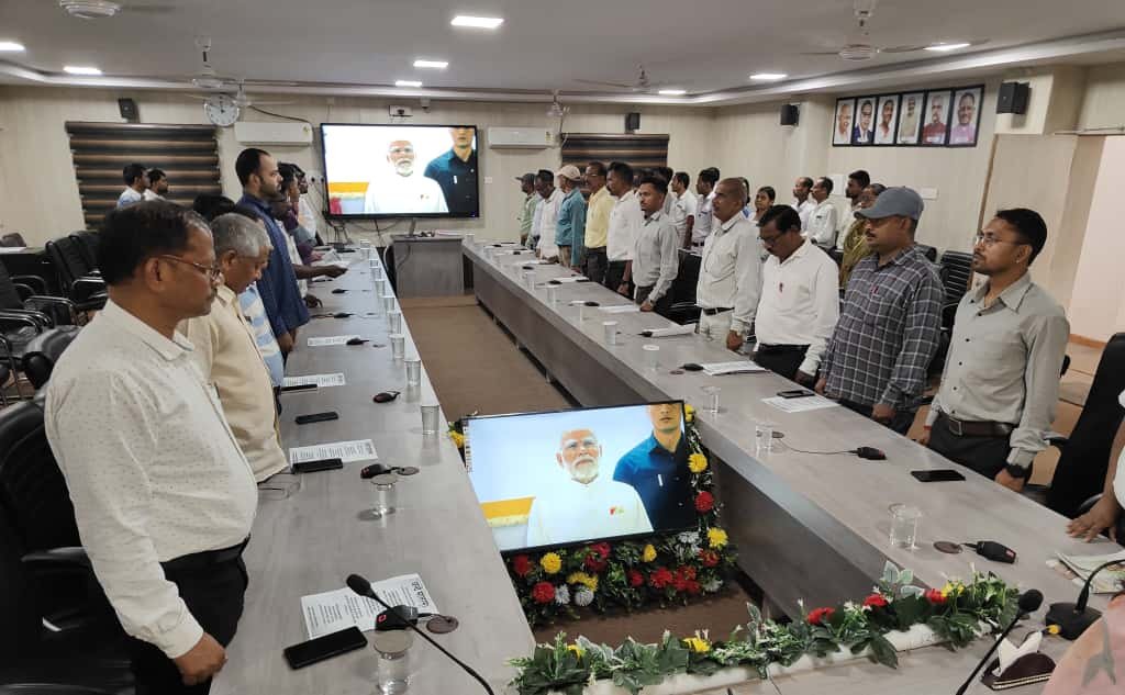 मोहला 7 नवंबर 2025। शासन के निर्देशानुसार वन्दे मातरम् की 150वीं वर्षगांठ के अवसर पर जिले में उत्साह और उमंग के साथ वंदे मातरम् सामूहिक गायन कार्यक्रम आयोजित किया गया। इस अवसर पर जिला मुख्यालय मोहला कलेक्ट्रेट सभा कक्ष में कलेक्टर श्रीमती तुलिका प्रजापति एवं सभी अधिकारी-कर्मचारी ने वन्दे मातरम् का सामूहिक गायन किया। इसी प्रकार जिले के सभी शासकीय महाविद्यालय, स्कूल, संस्थान एवं कार्यालयों में भी सामूहिक गायन आयोजन किया गया। इस अवसर पर अपर कलेक्टर श्री जीआर मरकाम, डिप्टी कलेक्टर श्री डीआर ध्रुव सहित अधिकारी-कर्मचारी उपस्थित रहे।