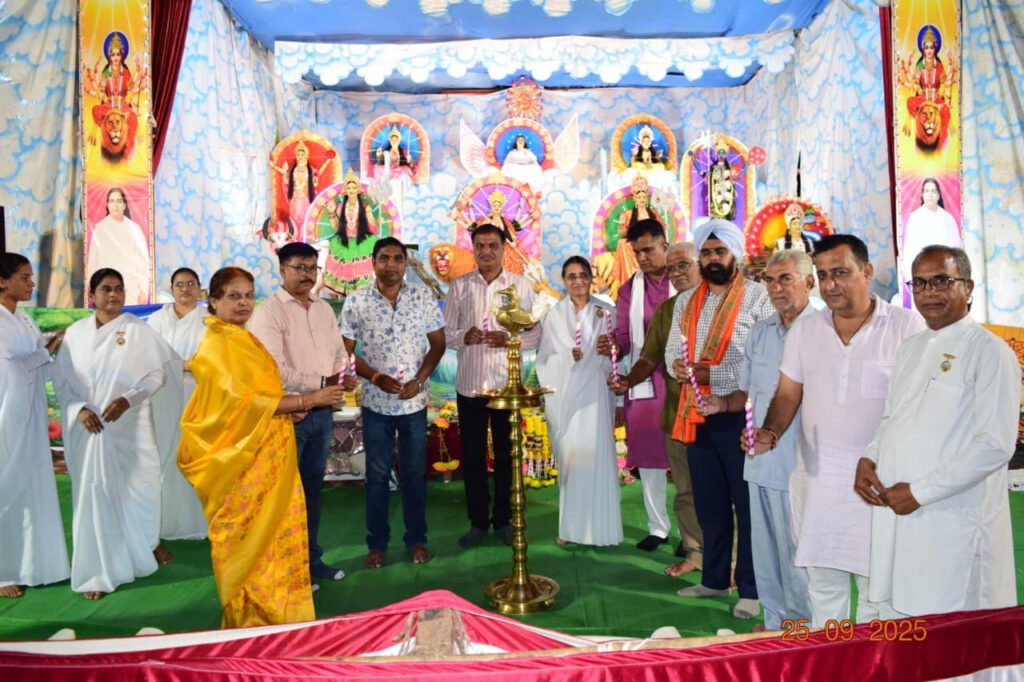राजनांदगांव – नवरात्रि के पावन अवसर पर प्रजापिता ब्रह्माकुमारी ईश्वरीय विश्व विद्यालय द्वारा ज्ञान मानसरोवर में आयोजित चैतन्य देवियों की झांकी का भव्य उद्घाटन महापौर भ्राता मधुसूदन यादव जी ने दीप प्रज्वलित कर किया तथा लोगों को नवरात्रि की शुभकामनाएं दी।