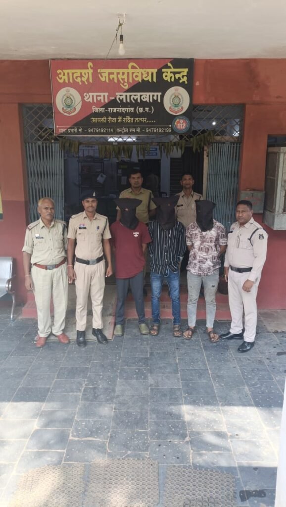राजनांदगांव। पुलिस अधीक्षक श्री मोहित गर्ग, अतिरिक्त पुलिस अधीक्षक श्री राहुल देव शर्मा एवं नगर पुलिस अधीक्षक श्रीमती वैशाली जैन के मार्गदर्शन में लालबाग पुलिस ने डकैती की गंभीर वारदात में शामिल तीन फरार आरोपियों को गिरफ्तार करने में सफलता प्राप्त की है। थाना प्रभारी राजेश कुमार साहू के नेतृत्व में यह कार्रवाई की गई।