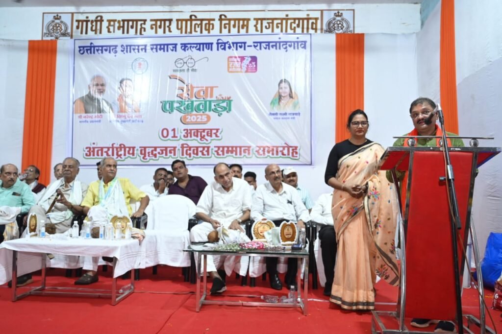 राजनांदगांव 02 अक्टूबर 2025। सेवा पखवाड़ा अंतर्गत अंतर्राष्ट्रीय वृद्धजन दिवस पर समाज कल्याण विभाग द्वारा गांधी सभागृह राजनांदगांव में अंतर्राष्ट्रीय वृद्धजन दिवस सम्मान समारोह का आयोजन किया गया। सम्मान समारोह में सांसद श्री संतोष पाण्डेय मुख्य अतिथि के रूप में उपस्थित थे।