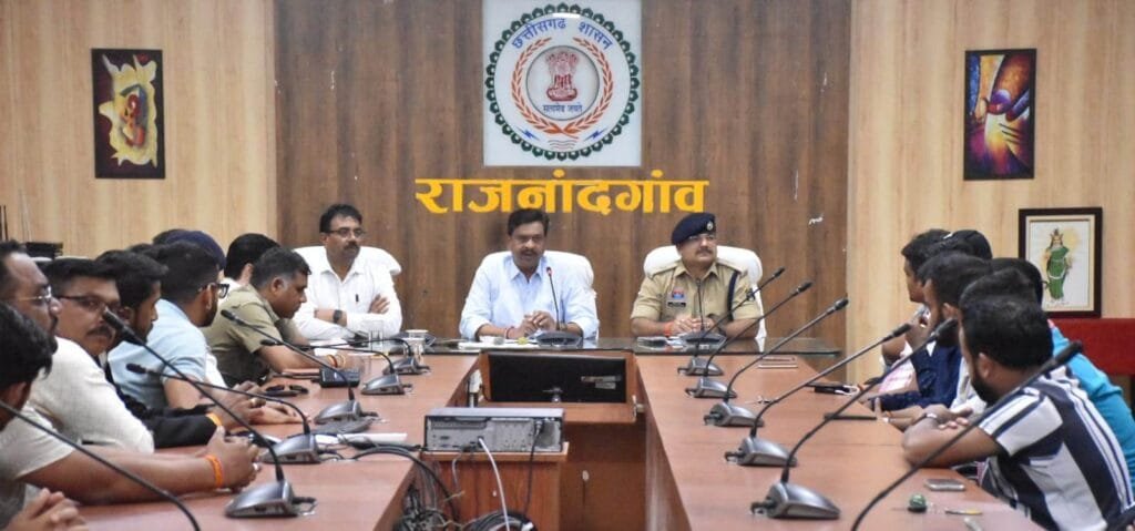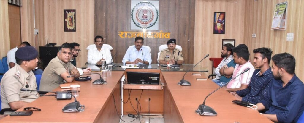राजनांदगांव 18 जुलाई 2025। कलेक्टर डॉ. सर्वेश्वर नरेन्द्र भुरे के निर्देशानुसार अपर कलेक्टर श्री सीएल मारकण्डेय ने कलेक्टोरेट सभाकक्ष में गणेश विसर्जन झांकी और सुरक्षा व्यवस्था के संबंध में गणेशोत्सव समितियों की बैठक ली। अपर कलेक्टर श्री सीएल मारकण्डेय ने कहा कि राजनांदगांव में गणेश उत्सव झांकी बहुत उत्साह के साथ मनाया जाता है। गणेश उत्सव झांकी देखने बड़ी संख्या में श्रद्धालु दूर-दूर से आते हैं। उन्होंने कहा कि गणेश विसर्जन के दौरान किसी तरह की अव्यवस्था नहीं होनी चाहिए।