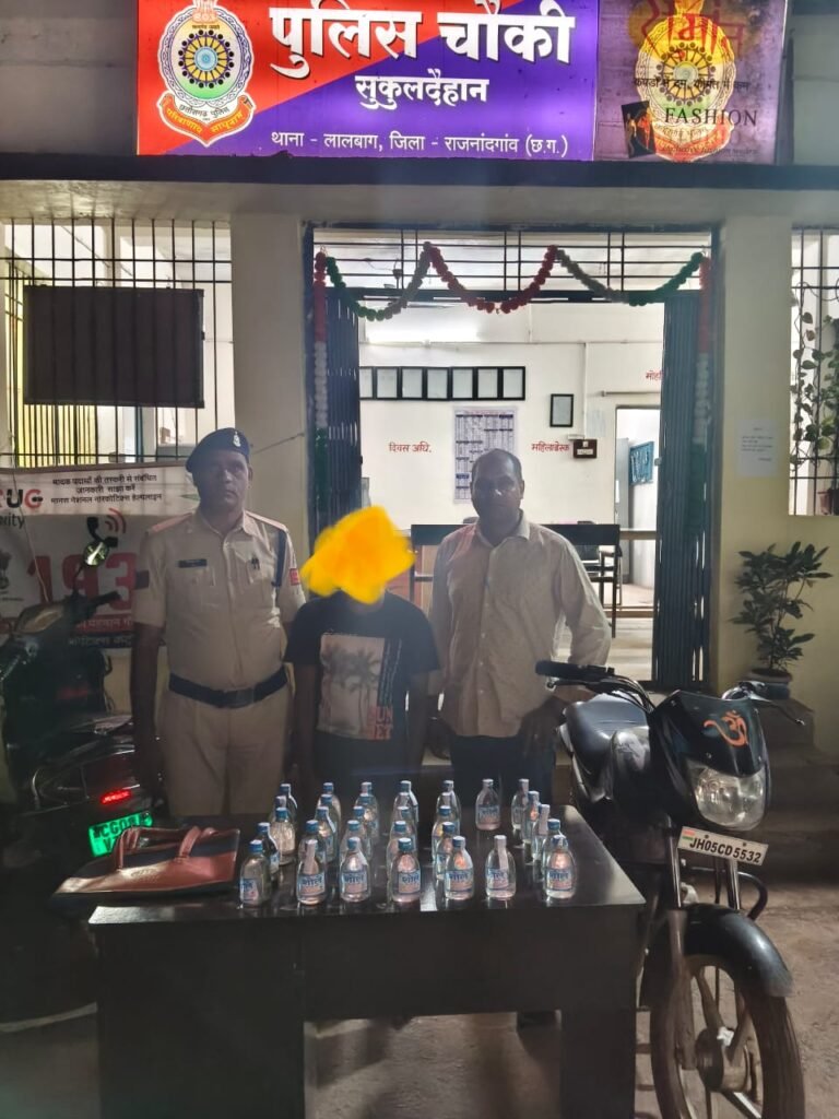 राजनांदगांव। पुलिस अधीक्षक सुश्री अंकिता शर्मा के निर्देशन एवं अतिरिक्त पुलिस अधीक्षक श्री राहुल देव शर्मा तथा नगर पुलिस अधीक्षक श्रीमती वैशाली जैन के मार्गदर्शन में अवैध शराब परिवहन और बिक्री के विरुद्ध चलाए जा रहे अभियान के तहत चौकी सुकुलदैहान पुलिस ने बड़ी कार्रवाई की है।