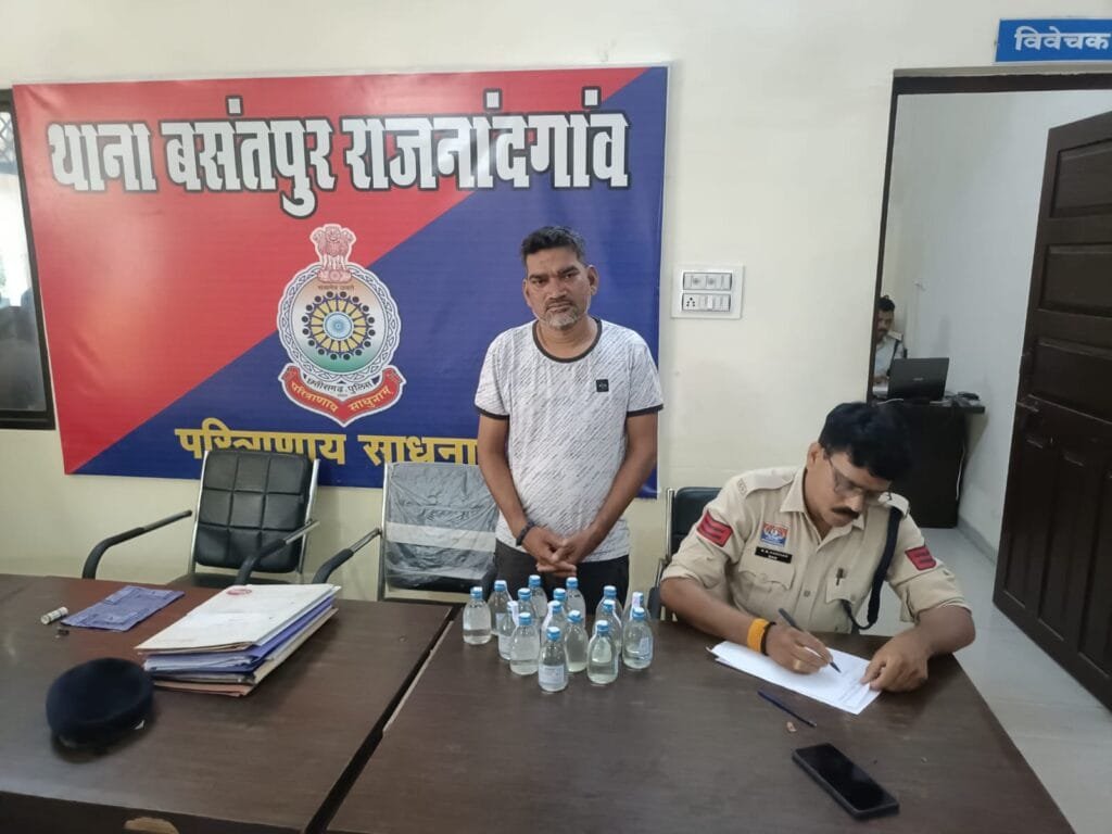 राजनांदगांव । श्री मोहित गर्ग (भा0पु0से0) पुलिस अधीक्षक राजनांदगांव द्वारा शहर में अवैध शराब बिक्री किये जाने संबंध में संज्ञान में लेते हुए अवैध शराब कोचियो के विरूद्व कार्यवाही हेतु निर्देश प्राप्त हुआ। जिस पर श्री राहुल देव शर्मा अति0पुलिस अधीक्षक राजनांदगांव एवं श्री पुष्पेन्द्र नायक नगर पुलिस अधीक्षक राजनांदगांव एवं निरीक्षक एमन साहू थाना प्रभारी बसंतपुर नेतृत्व में शराब कोचियों के विरूद्व प्रभावी कार्यावाही हेतु टीम गठित किया गया। गठित टीम द्वारा आरोपी संतोष यादव पिता शोभाराम यादव उम्र 48 साल निवासी इंदिरा नगर थाना बसंतपुर जिला राजनांदगांव को अवैध रूप से शराब बिक्री करते पाये जाने आरोपी के विरूद्व थाना बसंतपुर में अपराध क्रमांक 311/2025 धारा 34(ए) आबकारी एक्ट की तहत् कार्यवाही की गई।