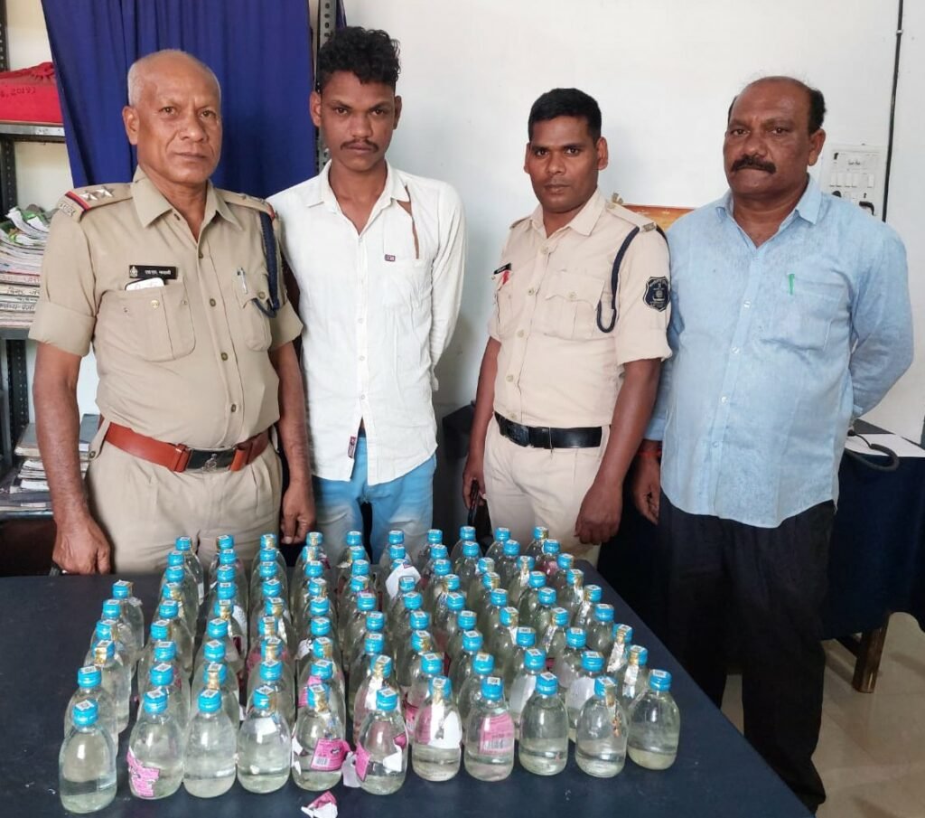 कब्जे से 21 पौवा देशी प्लेन मदिरा कीमती 1680 एवं बिक्री रकम 400 रूपये जप्त किया गया।