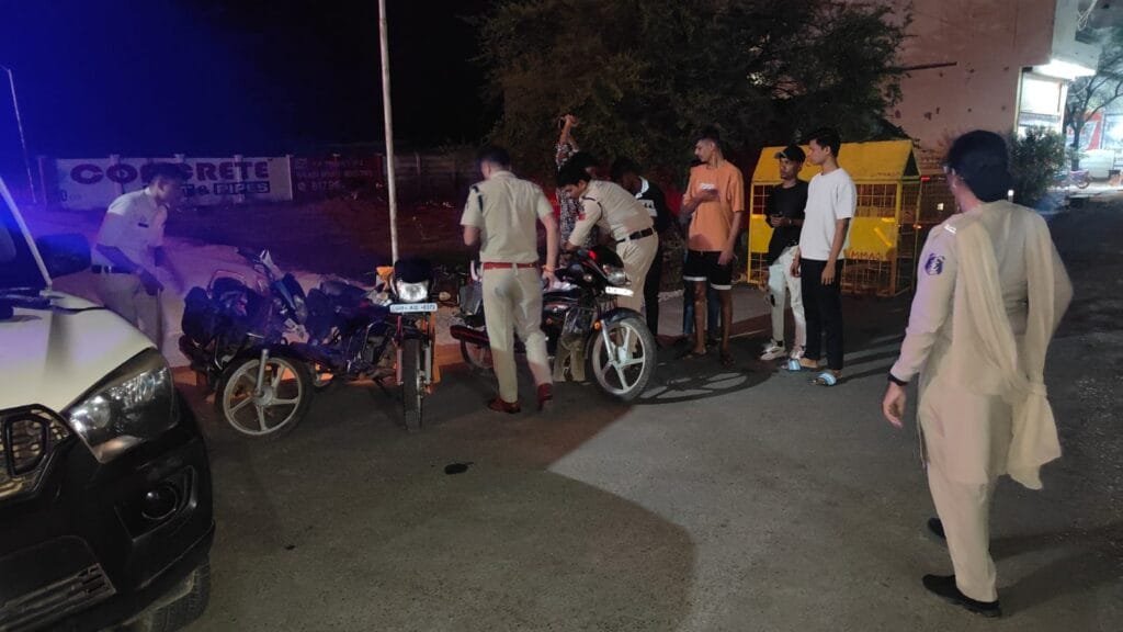 राजनांदगांव। थाना डोंगरगढ़ जिला राजनांदगांव (छ0ग0) पुलिस टीम के द्वारा विगत दिनो मे शहर एवं गांव मे होने वाले असामाजिक तत्वो एवं बदमाशो तथा गुण्डा बदमाश, निगरानी बदमाश, चाकू बाजी करने वाललो को डोंगरगढ़ पुलिस द्वारा कार्यवाही की जा रही है. व थाना लाकर पुछताछ एवं सनदेहियो का डोजियार तैयार कर रही है ! एव एसडीओपी महोदय डोंगरगढ़ श्री आशीष कुंजाम के मार्ग दर्शन पर थाना प्रभारी जितेन्द्र वर्मा एवं थाना स्टाफ द्वारा रात्रि मे नशे के हालत मे वाहन चलाने वाले, अनावश्यक तीन सवारी घूमते पाए जाने पर – यातायात नियमो का उलंघन करने वालो के विरूद्ध कार्यवाही लगातार कि जा रही है एवं दिगर राज्य से आये मुसफिरों को पुछताछ कर फिंगर प्रिंट लिया जा रहा है डोंगरगढ़ शहर में लगातार पेट्रोलिग एवं गस्त किया जा रहा है !!