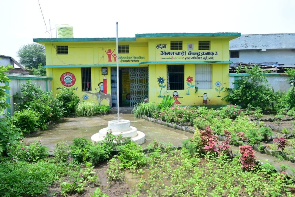 राजनांदगांव 16 जुलाई 2025। बच्चों को पौष्टिक आहार देने के लिए आंगनबाड़ी केन्द्रों में पोषण वाटिका का निर्माण किया गया है। जिससे बच्चों को स्थानीय स्तर पर उपलब्ध पौष्टिक साग-सब्जी एवं फल मिल रही है। राजनांदगांव विकासखंड के ग्राम भोथीपार खुर्द के आंगनबाड़ी केन्द्र में खुबसूरत पोषण वाटिका किचन गार्डन की तर्ज पर विकसित की गई है। जहां खट्टा भाजी, भिण्डी, केला, भाटा, कांदा भाजी, जरी, अरबी, चेच भाजी, लेमन ग्रास, अमरूद, शहतूत, सीताफल, नारियल लगाए गए हैं। वहीं फलदार पौधों के साथ जिनिया, हरसिंगार, गुड़हल, गुलाब, मोंगरा जैसे मोहक फूल भी लगाए गए हैं।