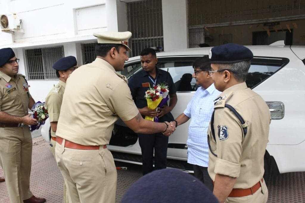 डीजीपी श्री अरूण देव गौतम के आगमन पर पुलिस महानिरीक्षक श्री अभिषेक शांडिल्य सहित पुलिस अधीक्षक राजनांदगांव श्री मोहित गर्ग, खैरागढ़-छुईखदान-गंड़ई पुलिस अधीक्षक श्री लक्ष्य शर्मा, मानपुर-मोहला-अं0चौकी पुलिस अधीक्षक श्री यशपाल सिंह, पुलिस अधीक्षक पी.टी.एस. श्री गजेन्द्र सिंह द्वारा पुष्पगुच्छ भेंट कर उनका स्वागत किया गया।