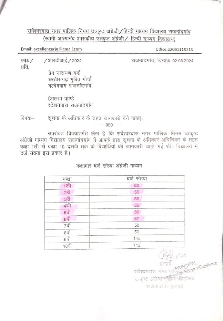 श्री देवांगन ने बताया है कि उन्होने कक्षा पहली में अपने पुत्र को सर्वेश्वरदास नगर पालिक निगम स्वामी आत्मांनद उत्कृष्ट अंग्रेजी माध्यम स्कूल राजनांदगांव के कक्षा पहली में हेतु आॅनलाईन आवेदन भरा था, जिसकी लाॅटरी डिप्टी कलेक्टर,