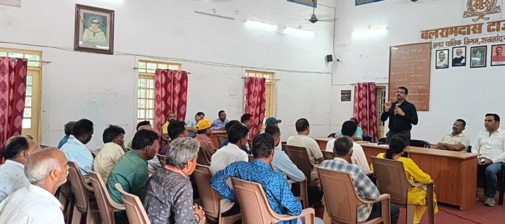 राजनांदगांव 24 जुलाई। निगम आयुक्त श्री अतुल विश्वकर्मा ने आज जल विभाग के अधिकारियो एवं वाल्वमेन की बैठक लेकर पेयजल सप्लाई के लिए व्यवस्था में सुधार करने दिशा निर्देश दिये। उन्होंने कहा कि पेयजल सप्लाई महत्वपूर्ण विषय है इसमें लापरवाही नही होनी चाहिए, जल विभाग का पूरा अमला सामंजस्य बनाकर कार्य करे।