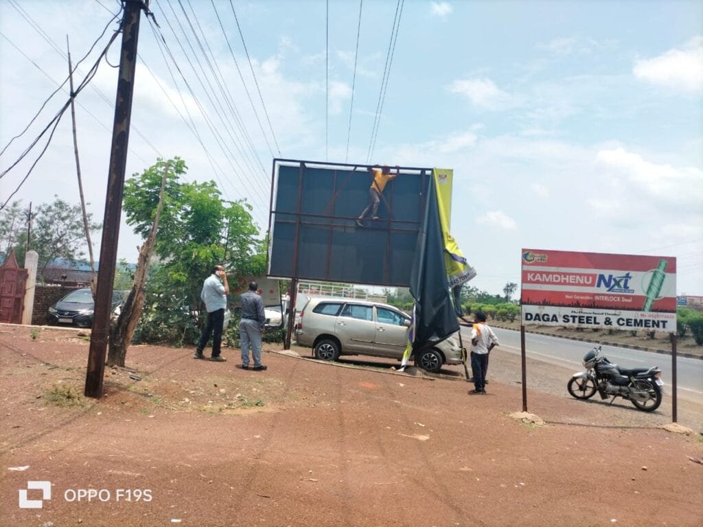 राजनांदगांव 27 मई। निगम सीमाक्षेत्र में निजी भवन के दीवाल, छत पर लगे होर्डिग्स बोर्ड, विद्युत पोलो में लगे छोटे बेनर-पोस्टर, फ्लाई ओव्हर के पिल्हर में विज्ञापन बिना अनुमति के लगाया गया है, जिसे नगर निगम आयुक्त श्री अतुल विश्वकर्मा के निर्देश पर निगम की टीम दो दिनों से हटाने की कार्यवाही कर रही है। इसी कडी में जी.ई.रोड में अवैध रूप से लगे विज्ञापन होडिग्स बोर्ड निगम टीम ने हटाई। उक्त अवैध बोर्डो को हटाने निगम आयुक्त द्वारा वार्ड निरीक्षण के दौरान निर्देशित किया गया था।