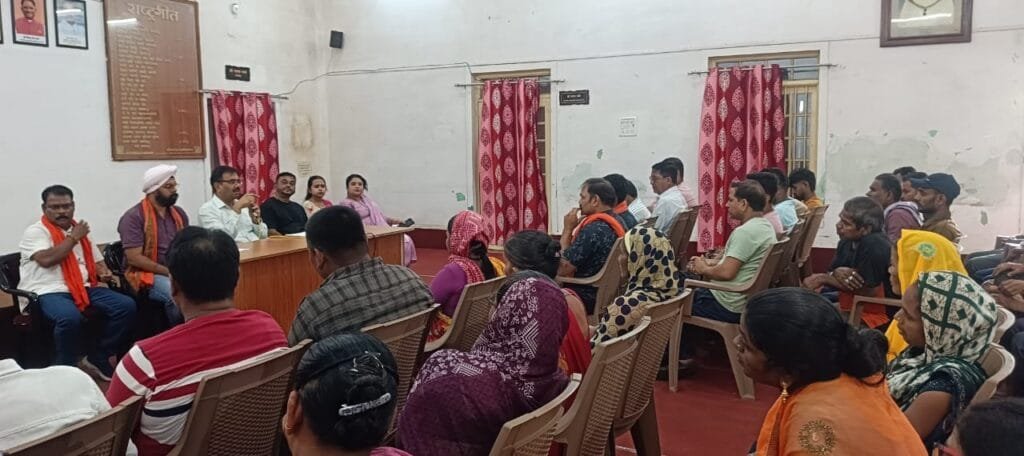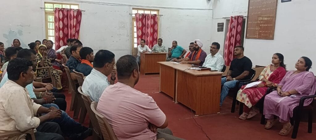 राजनांदगांव 12 जुलाई। शहर का वर्षो पुराना फल एवं सब्जी मार्केट गोल बाजार को साफ एवं व्यवस्थित रखने आज निगम आयुक्त श्री अतुल विश्वकर्मा ने टाउन हाल सभागृह में फल एवं सब्जी विक्रताओ की बैठक आहुत की। बैठक में स्वास्थ्य विभाग के प्रभारी सदस्य श्री शैकी बग्गा, बाजार विभाग की प्रभारी सदस्य श्रीमती केवरा राय, महिला एवं बाल विकास विभाग की प्रभारी सदस्य श्रीमती वर्षा सिन्हा, पूर्व पार्षद श्री शरद सिन्हा व श्री विजय राय की उपस्थिति में व्यवस्थित पसरा लगाने, बाजार में साफ सफाई रखने, सिंगल यूज प्रतिबंधित प्लास्टिक का उपयोग नही करने संबंधी विषयो पर फल व सब्जी विक्रेताओ से चर्चा की गयी।