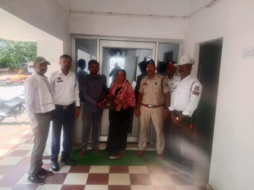 बताने पर सउनि शरद मसीह प्र.आर. 464 बीरबल सिंह आरक्षक 1385 रूपेन्द्र वर्मा के द्वारा तत्काल पता तलाश हेतु रवाना होकर आजाद चौक के पास प्रार्थिया द्वारा बताये कलर एवं पीछे में देवांगन जी लिखा हुआ था, जिसमें यातायात शाखा से प्रदाय यूनिक नंबर 659 लिखा हुआ था। ई-रिक्शा चालक से पूछताछ करने पर ई-रिक्शा में यात्री का पर्स छूटना बताया, जिसे यातायात कार्यालय लाकर प्रार्थिया को पूछने पर पर्स अपना होना एवं पूरा सामान चेक करने पर सुरक्षित होना बताई।