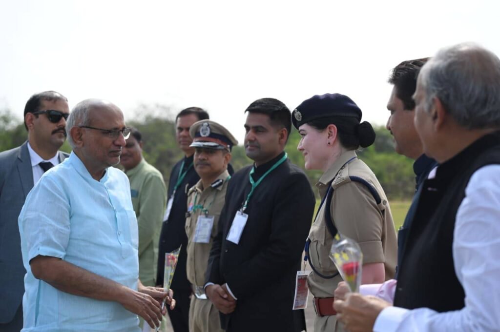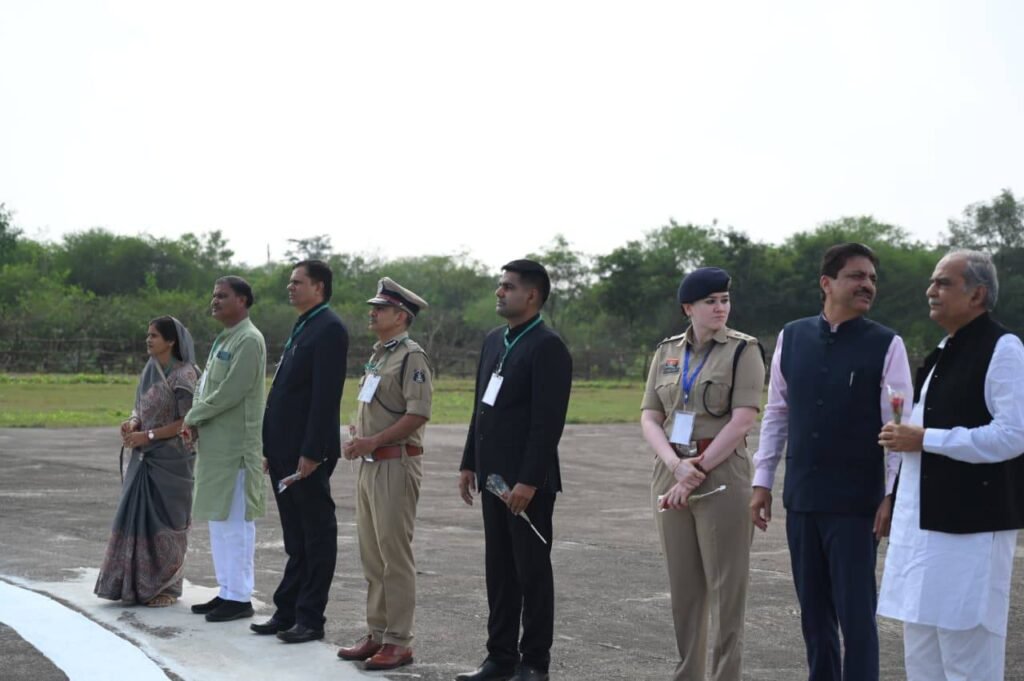 राजनांदगांव, 05 नवम्बर 2025। माननीय उपराष्ट्रपति महोदय आज राजनांदगांव जिले के पीटीएस ग्राउंड स्थित हेलीपैड पर पहुंचे, जहां उनका आत्मीय स्वागत किया गया। इस अवसर पर जिले के संभाग आयुक्त, कलेक्टर, पुलिस अधीक्षक, जनप्रतिनिधि एवं वरिष्ठ अधिकारी उपस्थित रहे।