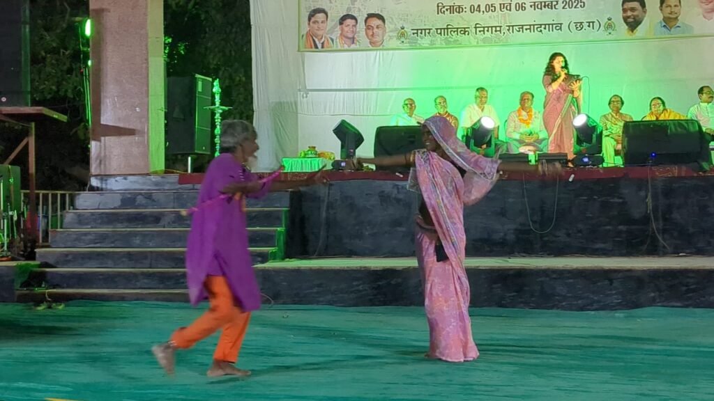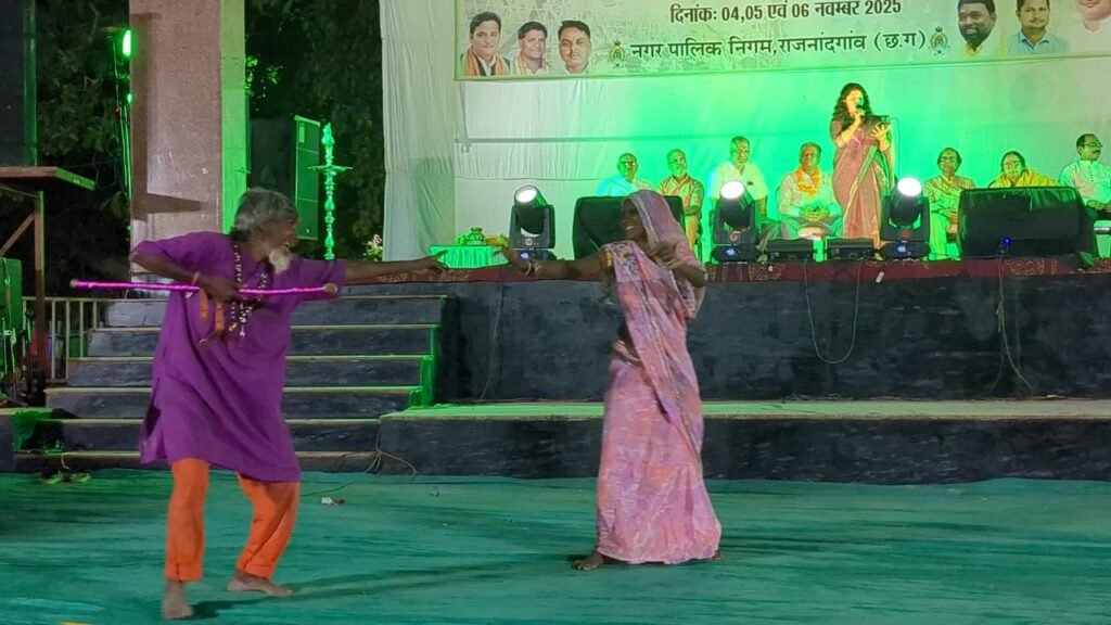 राजनांदगांव। मोहारा पुन्नी मेले के सांस्कृतिक मंच पर उस समय दर्शकों की तालियों की गड़गड़ाहट गूंज उठी जब एक बुजुर्ग दंपत्ति ने लोक धुन पर अपने थिरकते कदमों से सबका दिल जीत लिया। मेले के रंगारंग सांस्कृतिक कार्यक्रम के दौरान इस जोड़ी ने जिस आत्मीयता और उत्साह से नृत्य किया, वह पूरे आयोजन का आकर्षण बन गया।