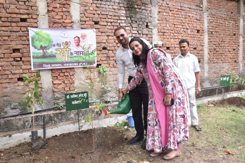 राजनांदगांव 20 जून 2025। कलेक्टर डॉ. सर्वेश्वर नरेन्द्र भुरे एवं उनकी पत्नी श्रीमती रश्मि भुरे ने आज कलेक्टोरेट परिसर में एक पेड़ माँ के नाम अभियान अंतर्गत नीम का पौधरोपण किया। जिला पंचायत सीईओ सुश्री सुरूचि सिंह ने नीम का पौधरोपण किया।
