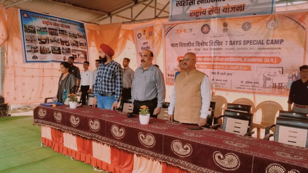 राजनांदगांव: शासकीय दिग्विजय स्वशासी स्नातकोत्तर महाविद्यालय द्वारा ग्राम घोरदा में आयोजित सात दिवसीय विशेष शिविर के तृतीय दिवस के बौद्धिक सत्र में ‘कैरियर गाइडेंस’ और ‘सामाजिक उत्तरदायित्व’ विषयों पर गहन चर्चा की गई। इस सत्र में मुख्य अतिथि के रूप में दिग्विजय महाविद्यालय के डॉ. संजय ठिसके (प्रोफेसर, प्राणी शास्त्र), प्रो. गुरप्रीत सिंह भाटिया (प्राणी शास्त्र) एवं शासकीय शिवनाथ विज्ञान महाविद्यालय के वरिष्ठ प्राध्यापक व रासेयो कार्यक्रम अधिकारी डॉ. एस.आर. कन्नौजे उपस्थित रहे।