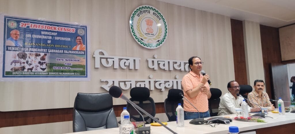 राजनांदगांव 17 सितम्बर 2024। कलेक्टर श्री संजय अग्रवाल की उपस्थिति में जिला पंचायत सभाकक्ष में 21वीं पशु संगणना कार्य विषय पर एक दिवसीय कार्यशाला का आयोजन किया गया। कार्यशाला में बताया किया गया भारत सरकार पशुपालन प्रभाग के महत्वपूर्ण कार्यक्रम 21वीं पशु संगणना कार्य सितम्बर से प्रारंभ होकर दिसम्बर 2024 तक पूर्ण होगी। जिसके लिए विभिन्न 16 प्रकार के पशुओं की नस्लवार विस्तृत डाटा एकत्र करने एवं एप के माध्यम से एंट्री करने हेतु प्रशिक्षण दिया गया।