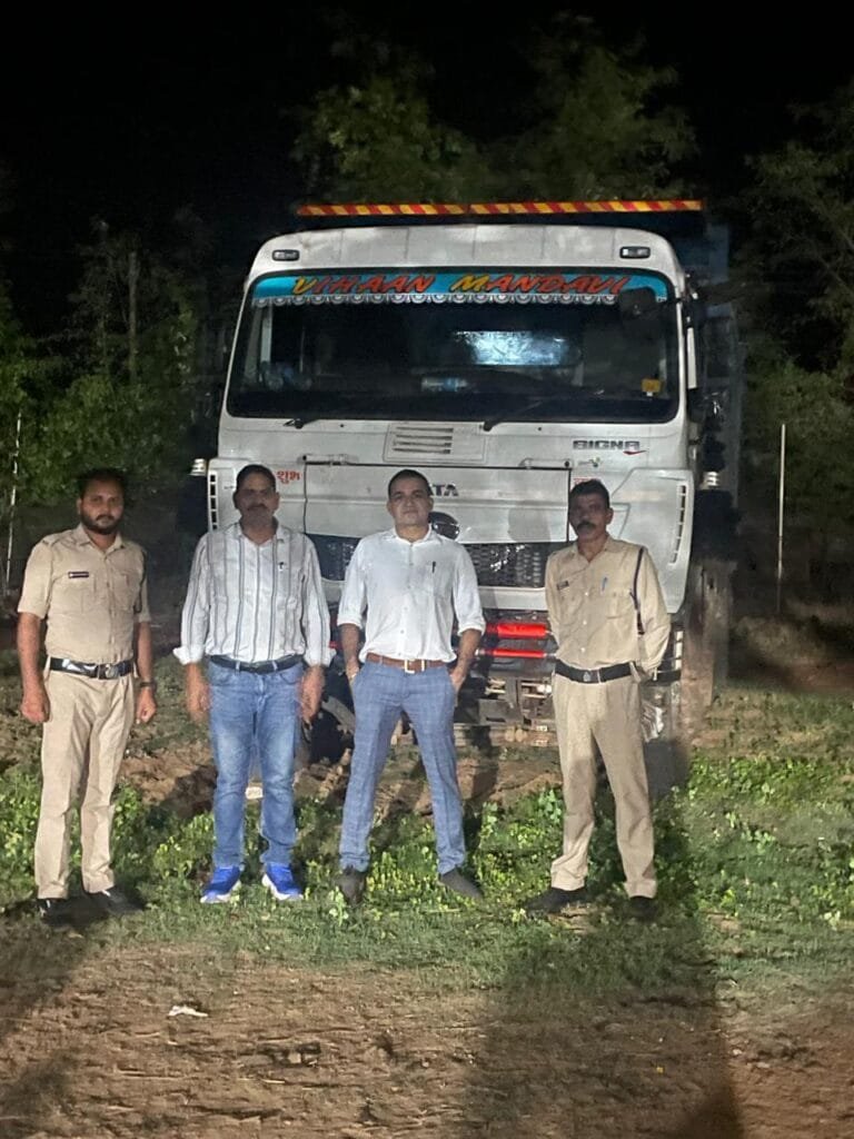 देर रात आकस्मिक निरीक्षण कर रेत एवं गिट्टी से भरे 8 वाहन के जप्ती की कार्रवाई की गई