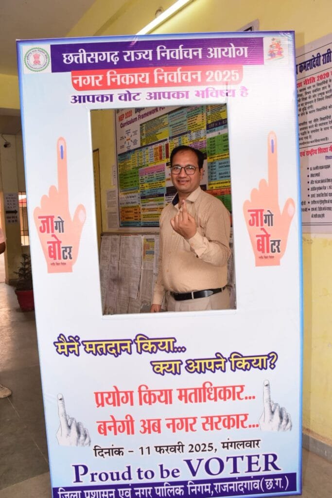 कलेक्टर ने मतदान केन्द्र में मतदाताओं के साथ लाईन में लगकर अपनी बारी का इंतजार कर मतदान किया। कलेक्टर ने मतदान कर अपने मताधिकार का प्रयोग किया। इस दौरान उन्होंने मतदान करने के बाद सेल्फी पॉइंट पर सेल्फी लेकर मतदान करने का संदेश दिया।