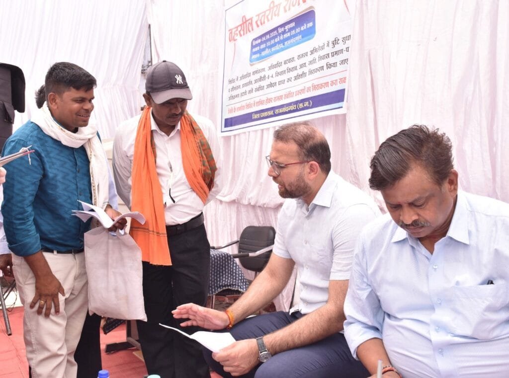 राजनांदगांव 04 जून 2025। जनसामान्य की समस्याओं का निराकरण करने तथा उन्हें तत्काल सुविधा उपलब्ध कराने के लिए जिला प्रशासन द्वारा जिले के सभी तहसील कार्यालय में राजस्व शिविर का आयोजन किया जा रहा है। जिससे नागरिकों को राजस्व से संबंधित समस्याओं के लिए भटकना न पड़े और उनके कार्य तत्काल पारदर्शिता के साथ शीघ्र पूरा हो सके। इसी कड़ी में कलेक्टर डॉ. सर्वेश्वर नरेन्द्र भुरे ने आज राजनांदगांव तहसील कार्यालय में आयोजित राजस्व शिविर का निरीक्षण किया। उन्होंने राजस्व शिविर में सभी पटवारी हल्के के टेबल में पहुंचकर प्राप्त आवेदनों की वस्तुस्थिति जानकारी ली और उसे समय-सीमा में नियमानुसार निराकरण करने के निर्देश दिए।