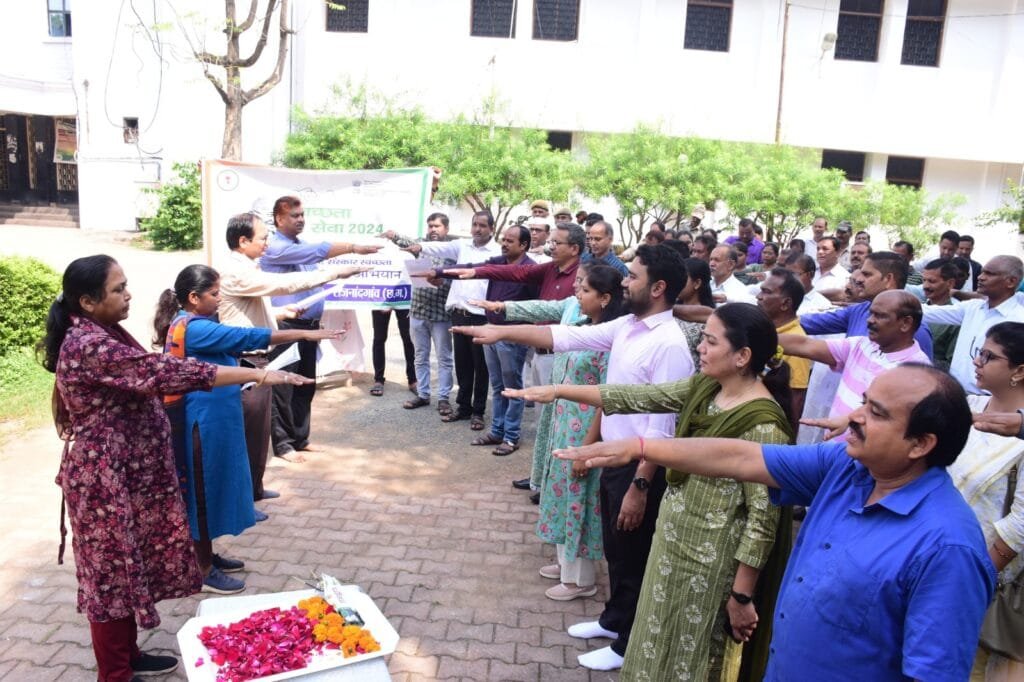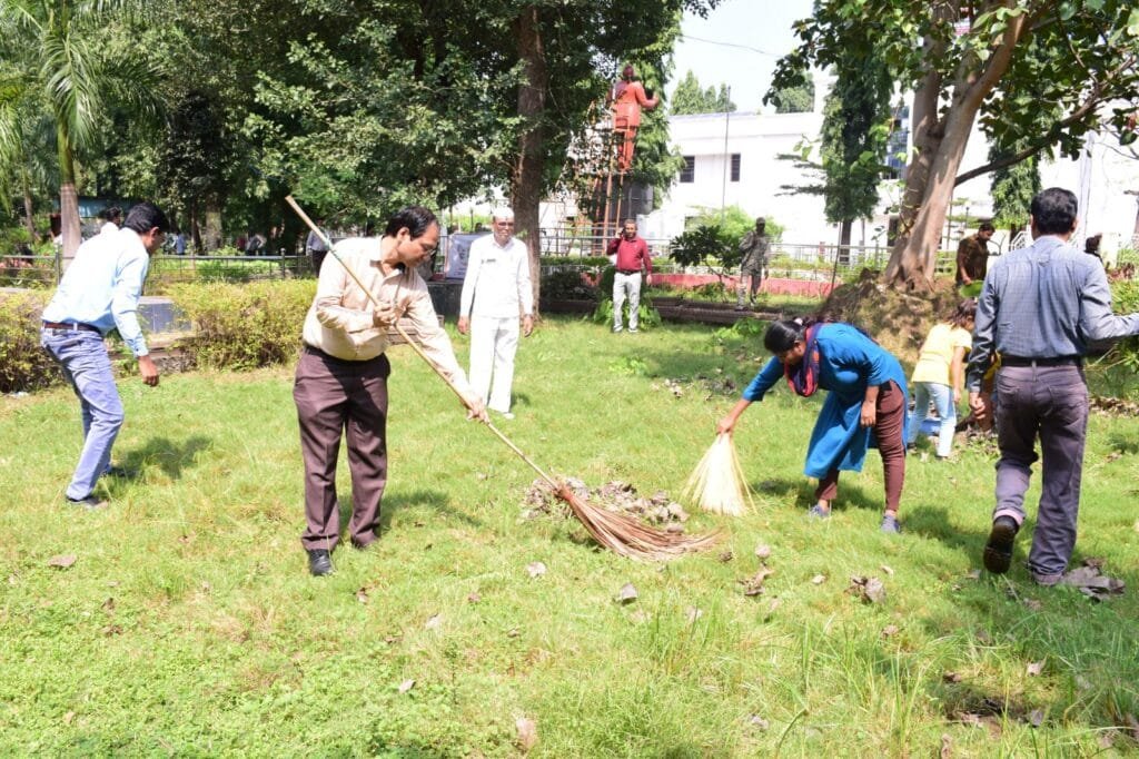 स्वच्छता ही सेवा अभियान अंतर्गत राष्ट्रपिता महात्मा गांधी के स्वच्छता के संदेश को जन-जन तक पहुंचाने के लिए कलेक्टोरेट गार्डन की व्यापक साफ-सफाई की गई। कलेक्टर श्री संजय अग्रवाल ने स्वयं झाडू लेकर साफ-सफाई की। कलेक्टर के आव्हान पर प्रेरित होकर अन्य सभी अधिकारियों एवं कर्मचारियों ने जोश एवं जज्बे के साथ झाडू लगाकर सघन साफ-सफाई की।