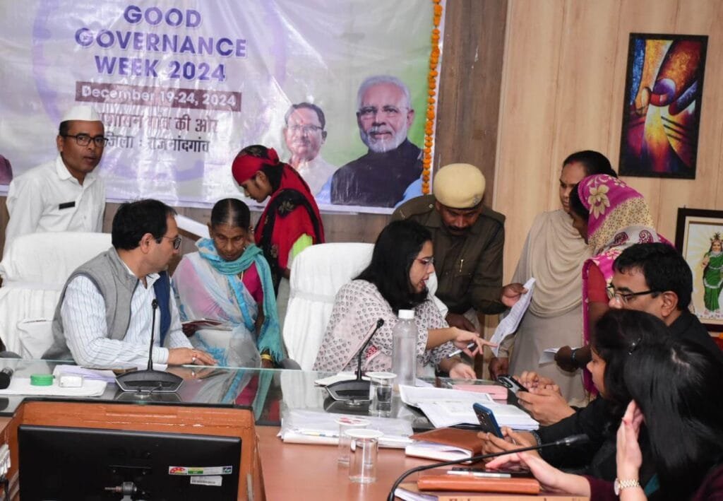 राजनांदगांव 24 दिसम्बर 2024। कलेक्टर श्री संजय अग्रवाल ने आज कलेक्टोरेट शक्ति कक्ष में आयोजित साप्ताहिक जनदर्शन कार्यक्रम में जिले के दूरस्थ स्थानों से आए लोगों से मुलाकात कर उनकी शिकायतों एवं समस्याओं को गंभीरतापूर्वक सुना। कलेक्टर श्री अग्रवाल ने जनदर्शन में जनसामान्य से प्राप्त मांगों एवं समस्याओं के आवेदन पत्रों का अवलोकन कर संबंधित अधिकारियों को निराकरण हेतु त्वरित कार्रवाई करने के निर्देश दिए।