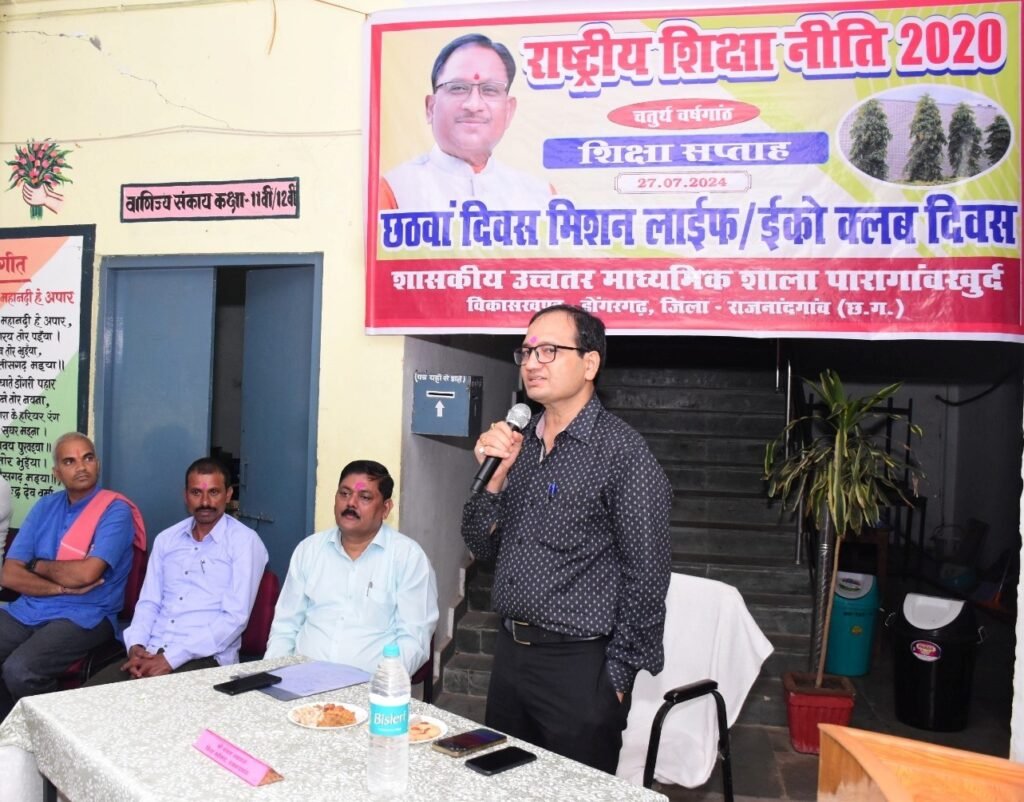 राजनांदगांव 27 जुलाई 2024। राष्ट्रीय शिक्षा नीति 2020 के क्रियान्वयन के चार वर्ष होने के अवसर पर जिले के सभी विद्यालयों में शिक्षा सप्ताह का आयोजन किया जा रहा है। कलेक्टर श्री संजय अग्रवाल आज डोंगरगढ़ विकासखंड के शासकीय हायर सेकेण्डरी स्कूल पारागांवखुर्द में आयोजित शिक्षा सप्ताह के छठें दिन मिशन लाइफ एवं इको क्लब दिवस के कार्यक्रम में शामिल हुए। इस अवसर पर कलेक्टर श्री अग्रवाल ने स्कूल परिसर में पौधरोपण और स्कूल परिसर का अवलोकन भी किया।