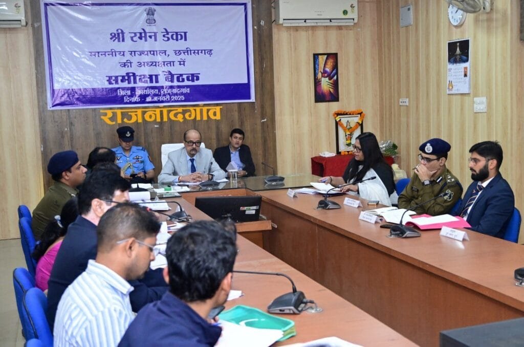 राजनांदगांव 10 जनवरी 2025। राज्यपाल श्री रमेन डेका की अध्यक्षता में आज कलेक्टोरेट सभाकक्ष में प्रशासनिक अधिकारियों की बैठक आयोजित की गई। इस अवसर पर राज्यपाल की संयुक्त सचिव श्रीमती हीना अनिमेष नेताम, आईजी श्री दीपक झा, कलेक्टर श्री संजय अग्रवाल, पुलिस अधीक्षक श्री मोहित गर्ग, वनमंडलाधिकारी श्री आयुष जैन, जिला पंचायत सीईओ सुश्री सुरूचि सिंह उपस्थित थे।