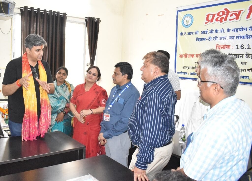 उन्होंने वैज्ञानिकों से उन्नत फसल उत्पादन हेतु विस्तृत चर्चा करते हुए किसानों से सीधे संवाद कर विक्रम- टीसीआर किस्म एवं अन्य फसलों को बीज उत्पादन कार्यक्रम के अंतर्गत लगाने हेतु प्रोत्साहित किया। कार्यक्रम में बड़ी संख्या में उपस्थित आसपास के उन्नत प्रगतिशील किसानों के मध्य भाभा परमाणु अनुसंधान केन्द्र मुंबई एवं इंदिरा गांधी कृषि विश्वविद्यालय रायपुर के सहयोग से विकसित धान की उत्परिवर्तित किस्म विक्रम-टीसीआर का व्यापक प्रसार किया गया।