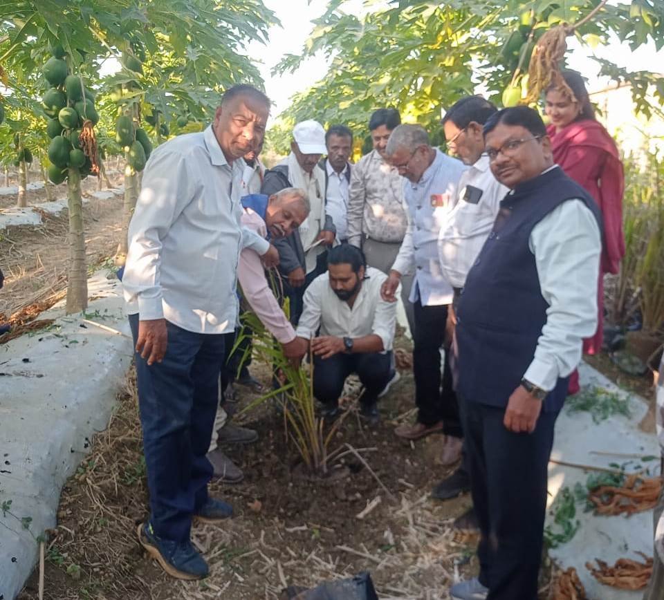 - राजनांदगांव 22 दिसम्बर 2025। उद्यानिकी विभाग एवं अम्मा पॉम प्लान्टेशन लिमिटेड द्वारा डोंगरगढ़ विकासखंड के ग्राम लभानिनभाठा में कृषकों को आयल पॉम की खेती के विषय पर प्रशिक्षण दिया गया। प्रशिक्षण में आयल पॉम की खेती के साथ-साथ तेल का उपयोग, महत्व एवं खाद्य मूल्य के साथ-साथ इसकी खेती की तकनीकी जानकारी कृषकों को प्रदान की गई।