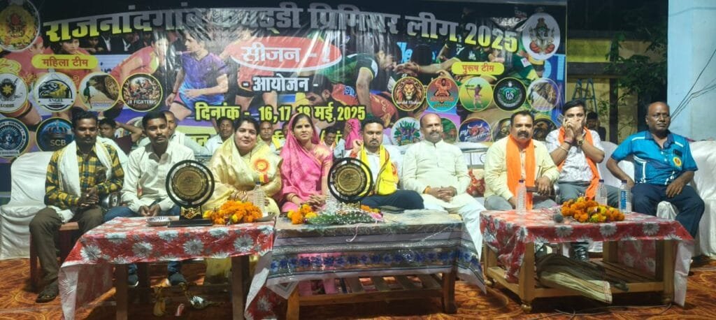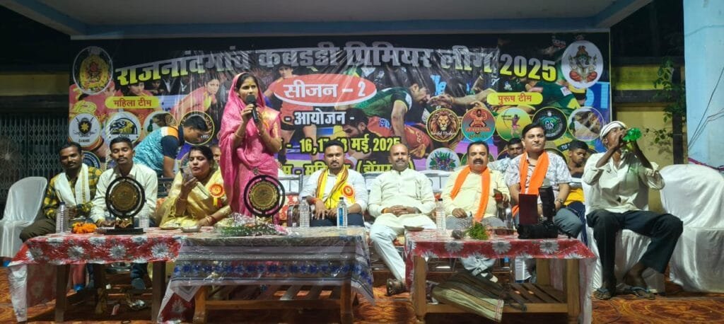 राजनांदगांव:-डोगरगढ ब्लाक के ग्राम मडिंयान में, जिला कबड्डी संघ द्वारा आयोजित राजनांदगांव कबड्डी प्रीमियर लीग के समापन समारोह में जिला पंचायत अध्यक्ष श्रीमती किरण रविन्द्र वैष्णव मुख्य अतिथि के रूप में पहुंचकर खिलाड़ियों का उत्साहवर्धन की। इस अवसर पर जिला पंचायत उपाध्यक्ष किरण साहु व जिला पंचायत सभापति प्रशांत कोंडापे विशिष्ट अतिथि के रूप में शामिल हुए।