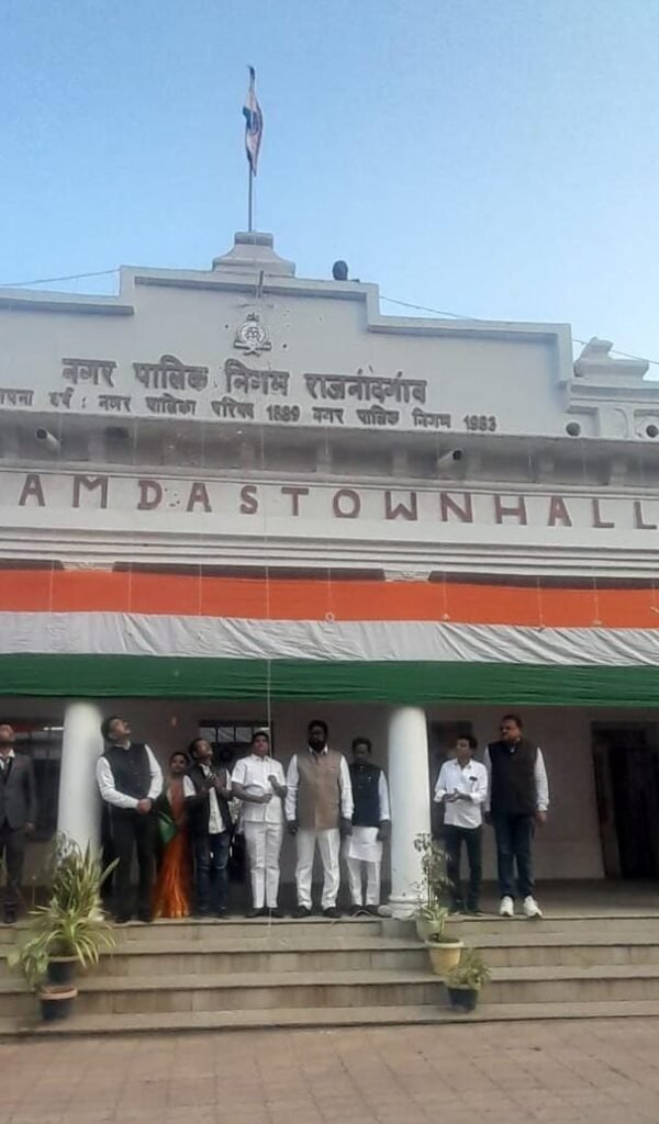 टाऊन हाल में आयोजित समारोह में सांसद प्रतिनिधि श्री देवशरण सेन, महापौर परिषद के प्रभारी सदस्यों सर्वश्री राजेश जैन रानू, सावन वर्मा, श्रीमती केवरा राय, श्रीमती वर्षा सिन्हा, डीलेश्वर साहू, वरिष्ठ पार्षद श्री शिव वर्मा व श्री सतीश मसीह, पार्षद सर्वश्री कमलेश बंधे, श्रीमती श्रुति लोकेश जैन, मनोहर यादव, रवि सिन्हा, सतीश कुमार साहू,पूर्व पार्षद श्री शरद सिन्हा व श्री विजय राय, पूर्व नामांकित पार्षद श्री एजाजुल रहमान व श्री तोरण देवांगन की उपस्थिति में निगम अध्यक्ष श्री पारस वर्मा द्वारा ध्वजारोहण किया गया।