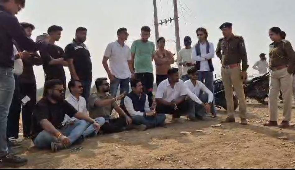 पुलिस ने रोका तो धरने में बैठकर भजन, आबकारी विभाग को गुलाब भेंट कर जताया अहिंसक विरोध