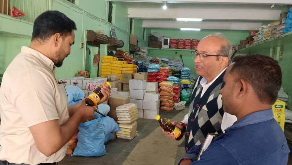 खाद्य सुरक्षा विभाग राजनांदगांव की टीम द्वारा सरसों तेल के थोक एवं चिल्लहर विक्रेताओं के प्रतिष्ठानों का औचक निरीक्षण कर विधिक नमूना गुणवत्ता जांच हेतु सरसों तेल का नमूना लिया गया। निरीक्षण के दौरान थोक विक्रेता मेसर्स कांतिलाल प्रागजली भाई से लाल गुलाब सरसों तेल एवं मेसर्स राजेश ट्रेडर्स से बंगाल किंग सरसों तेल का विधिक नमूना गुणवत्ता जांच हेतु लिया गया। लैब जांच के उपरांत प्राप्त रिपोर्ट के आधार पर आगे की कार्रवाई की जाएगी।