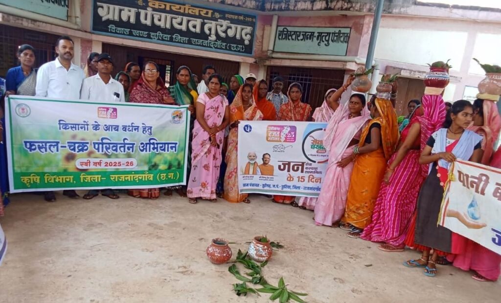 राजनांदगांव : ग्रामीणों को नीर और नारी जलयात्रा के माध्यम से जल संरक्षण एवं फसल चक्र परिवर्तन के लिए किया गया जागरूक…