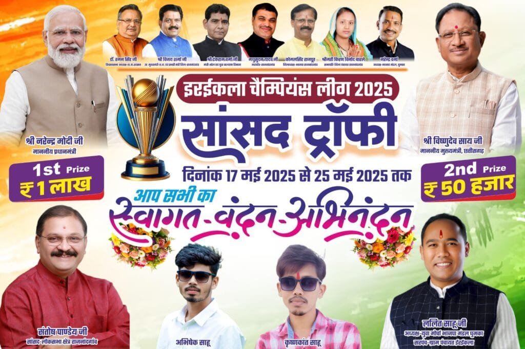 राजनांदगांव। जिले के ग्राम इरईकला में इरईकला चैम्पियन लीग 2025 सांसद ट्रॉफी का शुभारंभ हो गया है। यह आयोजन दिनांक 17 मई, दिन शनिवार से प्रारंभ होकर करके 25मई दिन रविवार को सांसद ट्रॉफी का समापन होगा। इरईकला चैम्पियन लीग 2025 #सांसद ट्रॉफी#का पहला ईनाम 1लाख रु एवं दूसरा ईनाम 50हजार रु रखा गया है।यह आयोजन काफी वृहद स्तर में  हो रहा है, जिससे छेत्र में हर्षोल्लास बनी हुई है।