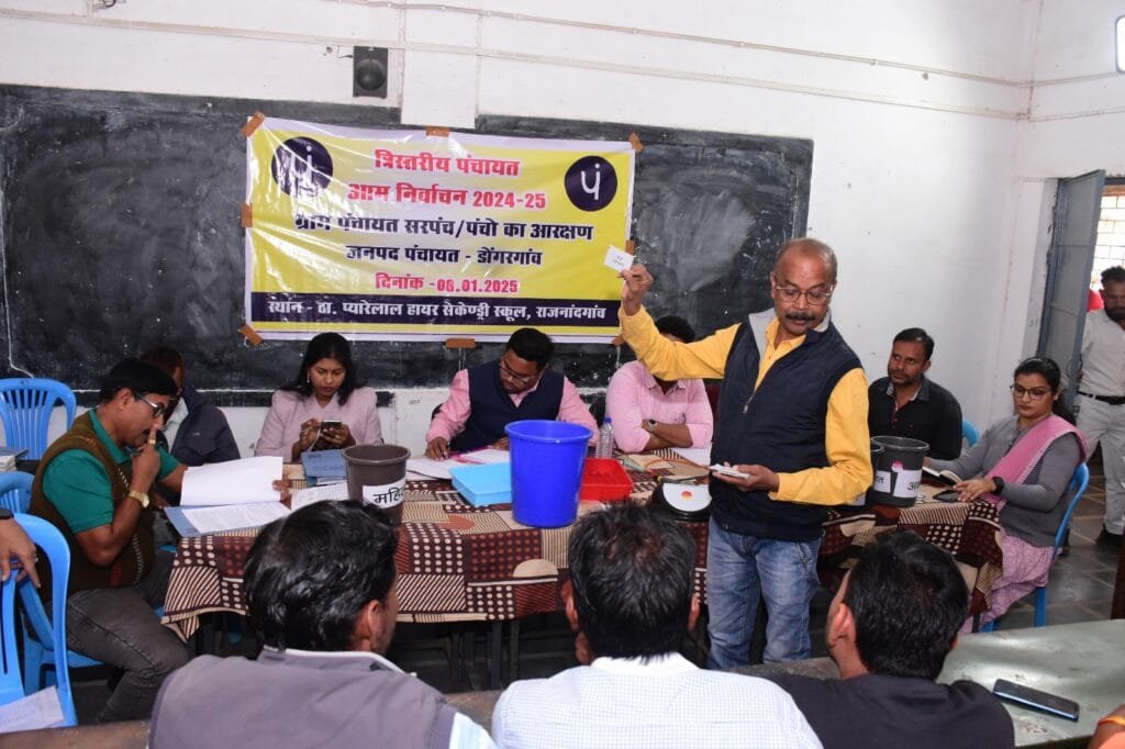 राजनांदगांव 15 जनवरी 2025। कलेक्टर एवं जिला निर्वाचन अधिकारी श्री संजय अग्रवाल के मार्गदर्शन में त्रिस्तरीय पंचायत आम निर्वाचन 2024-25 अंतर्गत सरंपंच एवं पंच पदों के लिए लॉट निकालकर आरक्षण की कार्रवाई की गई। इसके तहत अनुसूचित जाति, अनुसूचित जनजाति, पिछड़ा वर्ग एवं महिलाओं के लिए ग्राम पंचायतों के सरपंच एवं पंच पदों हेतु आरक्षित किया गया। जिले के 408 ग्राम पंचायतों के लिए सरपंच पद के लिए अनुसूचित जाति, अनुसूचित जनजाति, अन्य पिछड़ा वर्ग एवं महिला वर्ग हेतु आरक्षण की कार्रवाई की गई। अनुसूचित जाति वर्ग के लिए कुल 39 सरपंच पद में से 21 पद महिलाओं के लिए आरक्षित किया गया है, शेष 18 पद मुक्त रखा गया है। इसी तरह अनुसूचित जनजाति वर्ग के कुल 102 पदों में से 52 पद महिलाओं एवं 50 पद मुक्त रखा गया है।