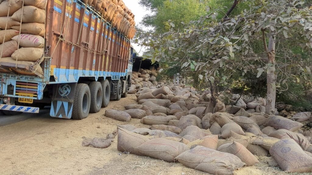 राजनांदगांव। खैरागढ़ राजनांदगांव मुख्यमार्ग में ग्राम बोरी के समीप धान से भरी ट्रक सड़क में पलट गई। ट्रक घुमका पटेवा स्थित सोसाइटी से धान लेकर राजनांदगांव आ रहा था उसी समय आज दोपहर लगभग 4 बजे ग्राम बोरी के पास तेज रफ्तार ट्रक ओवरलोड होने के कारण अपना संतुलन नहीं बना पाया और सड़क पर पलट गई।
