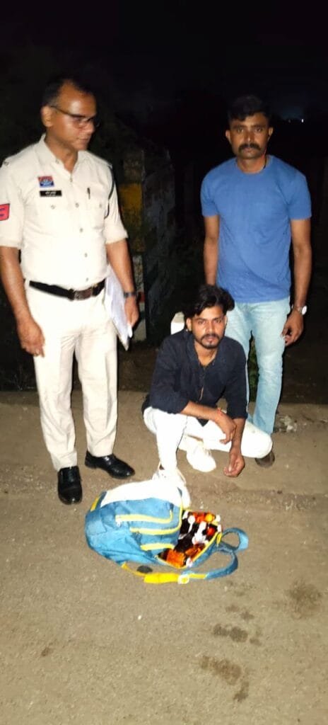 राजनांदगांव । श्रीमान् पुलिस अधीक्षक महोदय श्री मोहित गर्ग के निर्देशन व अतिरिक्त पुलिस अधीक्षक महोदय श्री राहुल देव शर्मा के मार्गदर्शन एवं नगर पुलिस अधीक्षक महोदय श्री पुष्पेन्द्र नायक के पर्यवेक्षण में जिले मे शांति एवं कानून व्यवस्था बनाये रखने असामाजिक तत्वों, अवैध शराब बिक्री-परिवहन, गुुण्डा बदमाश के विरूद्ध चलाए जा रहे अभियान कार्यवाही मे चौकी प्रभारी निरीक्षक अरूण कुमार नामदेव के नेतृत्व मे दिनांक 27.07.2025 को गठुला नाला खैरागढ़ रोड मे अवैध रूप से शराब रखकर बस का इंतजार कर रहे आरोपी उदय कुमार खरे पिता स्व. दिलावर खरे उम्र 22 साल साकिन ठेलकाडीह थाना ठेलकाडीह के.सी.जी. के कब्जे से 15 पौवा गोवा व्हीस्की शराब, 4 पौवा सीजी फाईन व्हीस्की शराब जुमला कीमती 2280 रूपये जप्त किया गया आरोपी के विरूद्ध विधिवत कार्यवाही कर धारा 34(1) आबकारी एक्ट के तहत् वैधानिक कार्यवाही किया गया।