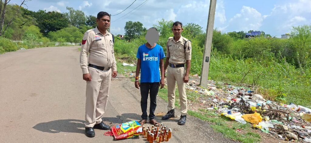 1. ईश्वर रजक पिता नेहरू रजक (उम्र 27 वर्ष) – पुराना ढाबा, थाना लालबाग से 21 पौवा बाम्बे गोवा व्हिस्की (कीमत 2520 रुपये)।