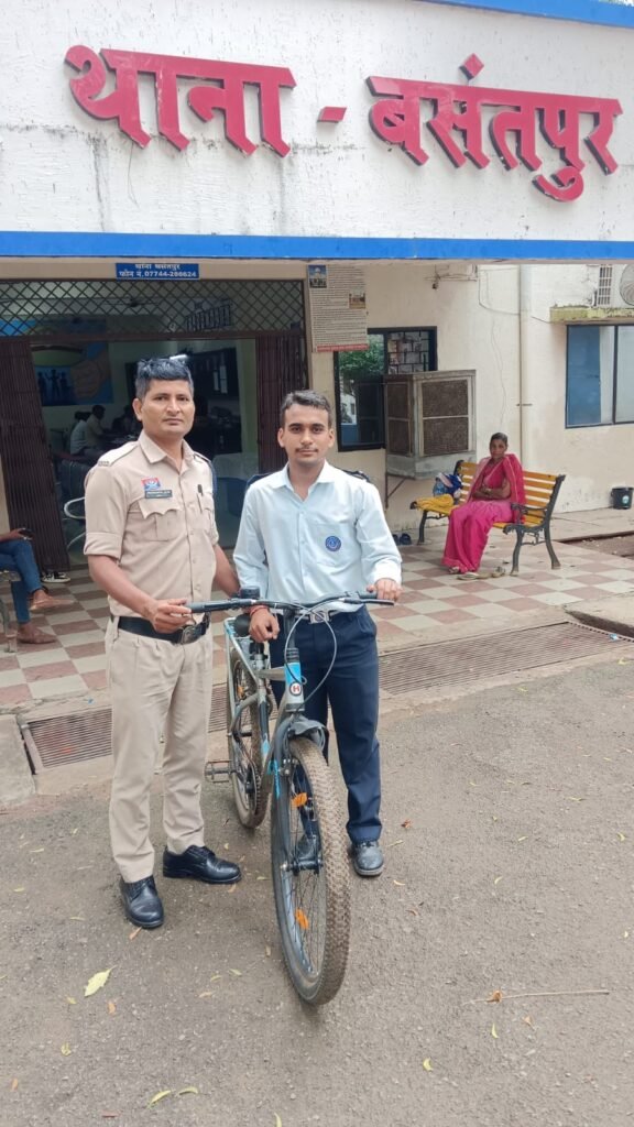 राजनांदगांव। थाना बसंतपुर एवं सायबर सेल राजनांदगांव पुलिस की संयुक्त कार्रवाई में एक छात्र की गुम हुई सायकल को बरामद कर उसे सुपुर्द किया गया। सायकल वापस मिलने पर छात्र ने राजनांदगांव पुलिस के प्रति आभार व्यक्त किया।